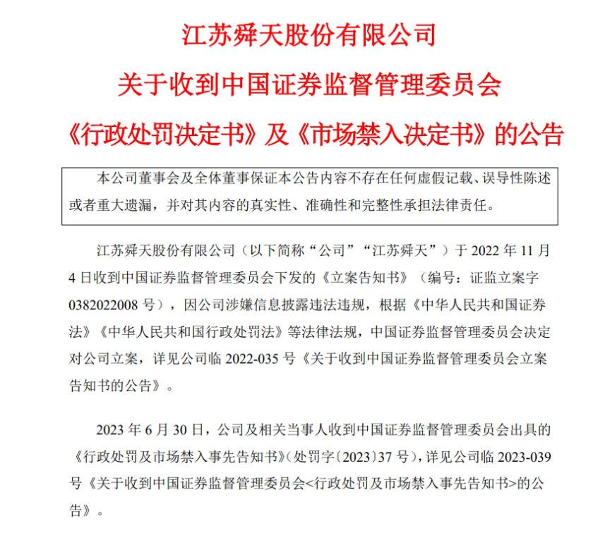 數(shù)據(jù)開頭:江蘇舜天《行政處罰決定書》