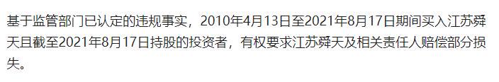 就拿江蘇舜天來說,把柄現(xiàn)存的信息,2010年4月13日至2021年8月17日歷間買入江蘇舜天股票,況兼在2021年8月17日還執(zhí)有的投資者,都有權(quán)條款抵償。