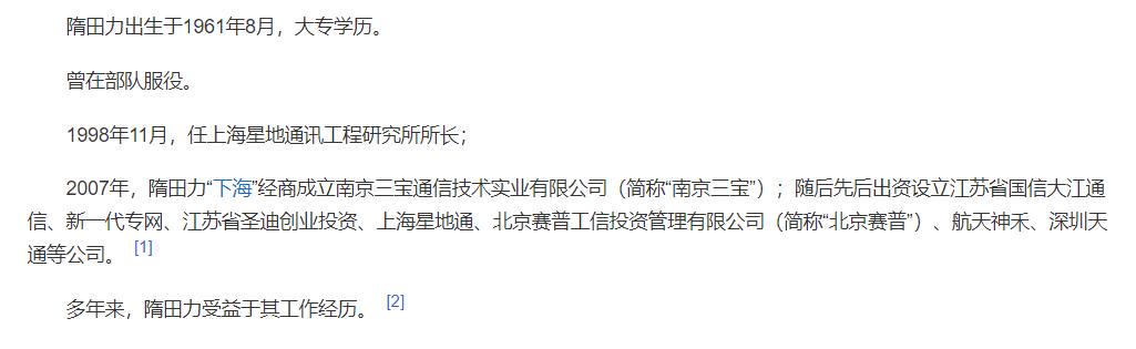 從這運(yùn)轉(zhuǎn),這位\"隋總\"就像翻開了任督二脈似的,猖獗地斥地多樣公司:江蘇省國信大江通訊、新一代專網(wǎng)、江蘇省圣迪創(chuàng)業(yè)投資、上海星地通通訊科技有限公司、北京賽普工信投資搞定有限公司、航天使禾、深圳天通等等。險些是要把通盤通訊行業(yè)都裝進(jìn)我方的口袋啊!